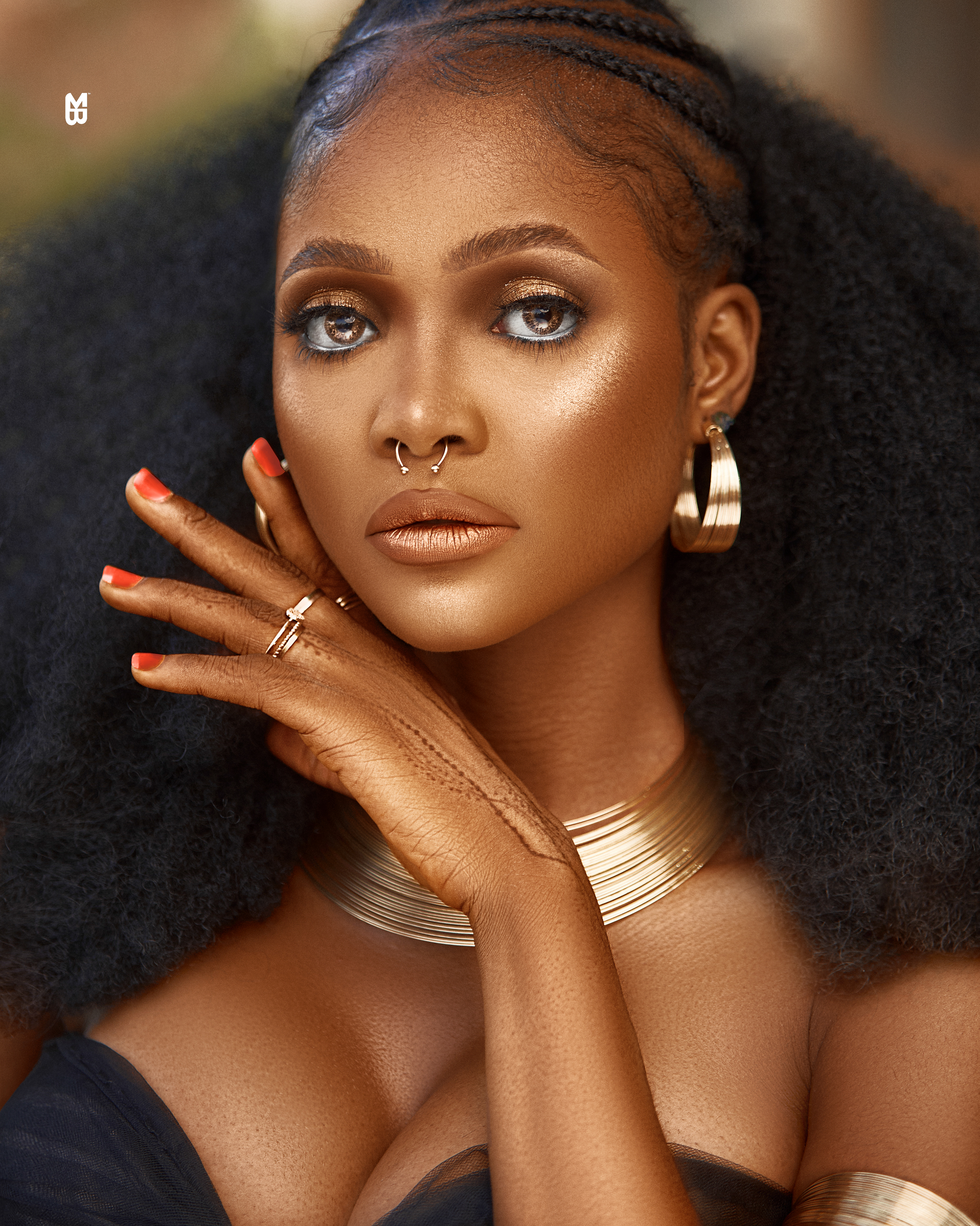 The model in this photograph, with her golden adornments and exquisite hairstyle, represents the fusion of traditional craftsmanship and contemporary elegance. Her melanin-rich skin glows with the warmth of history, while her regal demeanor speaks of a lineage filled with strength and wisdom. The gold chains and bracelets symbolize the wealth of culture and the unbreakable spirit that defines African women.